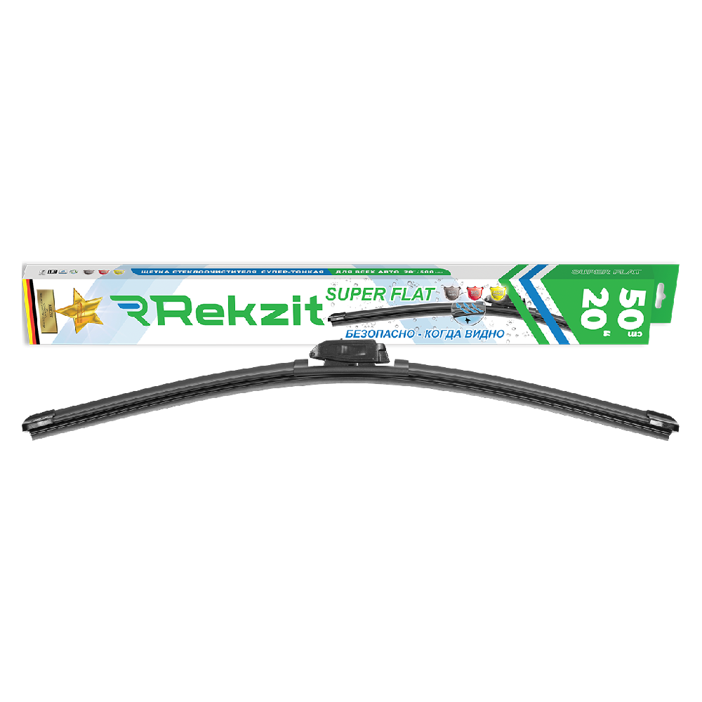 В щетках стеклоочистителей REKZIT "SUPER FLAT" мы сделали резину бескаркасной щетки из каучука, с добавлением синтетического волокна и графита. При этом каучук придает всему изделию гибкость, а графит увеличивает ее устойчивость к износу, а также обеспечивается защиту от ультрафиолетовых лучей.
